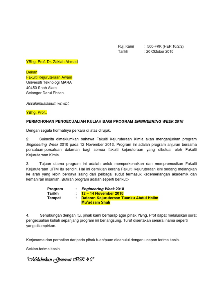 Contoh Surat Pengecualian Kuliah Uitm Kumpulan Contoh Terbaru